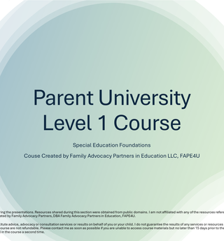 FAPE4U's Parent University: Level 1 Special Education Foundations